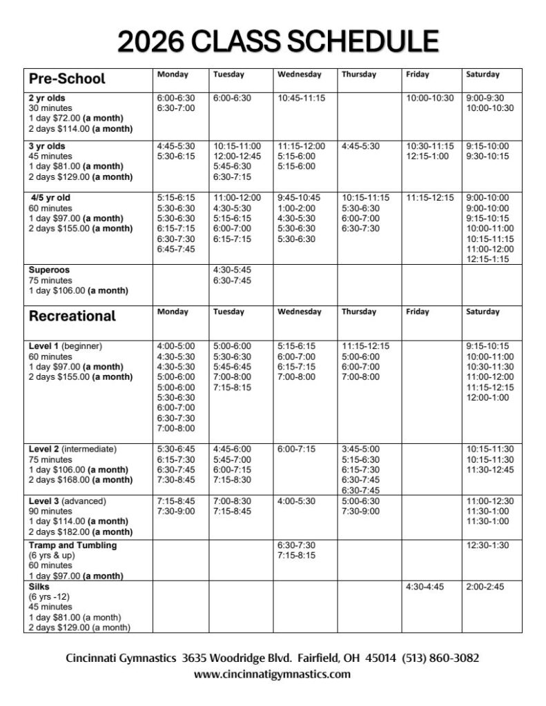 2026 Class Schedule