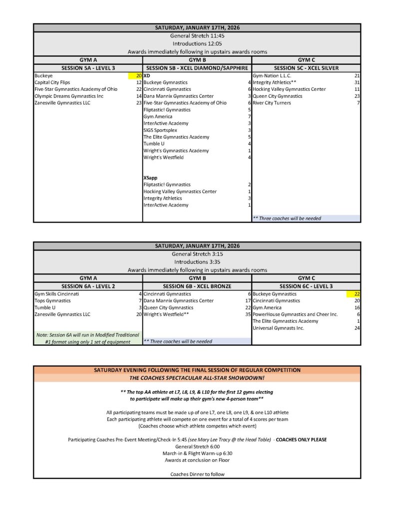 Meet Schedule Our schedule will posted here when it is available – usually in early December 2026 Coaches Spectacular Schedule Teams highlighted in yellow are split into multiple sessions Download the Complete Schedule Here Shop for Official Coaches SpectacularEvent Apparel in advance!